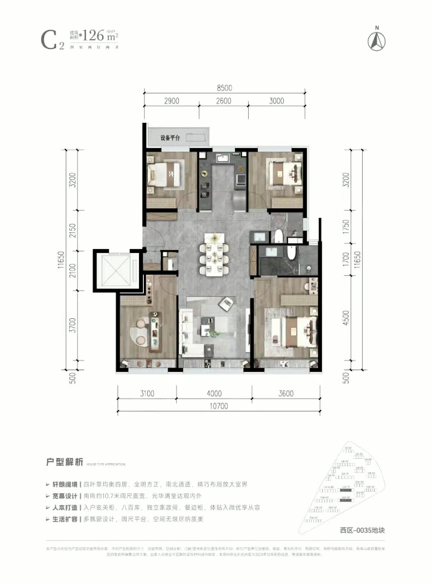 C2户型126㎡-4室2厅2卫-126.0㎡