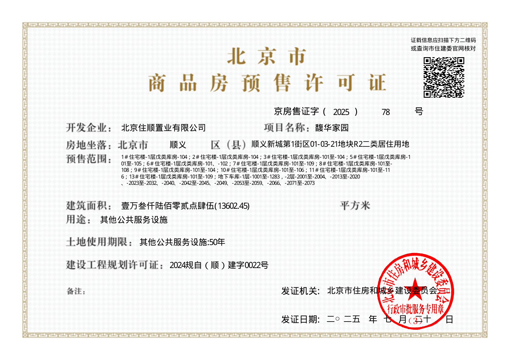 京房售证字(2024)67号 查看图片 | 2024-08-05 | 1#住宅楼1至11层地上全部住宅;2#住宅楼1至11层地上全部住宅;3#住宅楼1至9层地上全部住宅;4#住宅楼1至11层地上全部住宅;5#住宅楼1至11层地上全部住宅;6#住宅楼1至11层地上全部住宅;7#住宅楼1至9层地上全部住宅;8#住宅楼1至11层地上全部住宅;9#住宅楼1至11层地上全部住宅;10#住宅楼1至11层地上全部住宅;11#住宅楼1至9层地上全部住宅;12#住宅楼1至11层地上全部住宅;13#住宅楼1至11层地上全部住宅 |