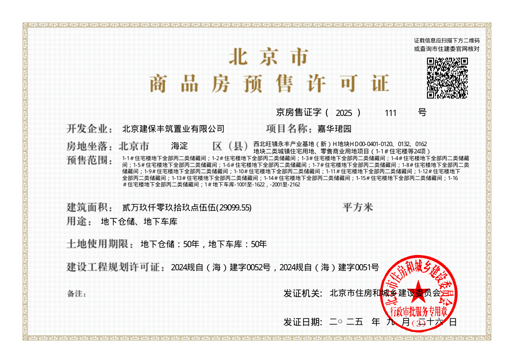 京房售证字(2025)111号 | 2025-09-26 | |