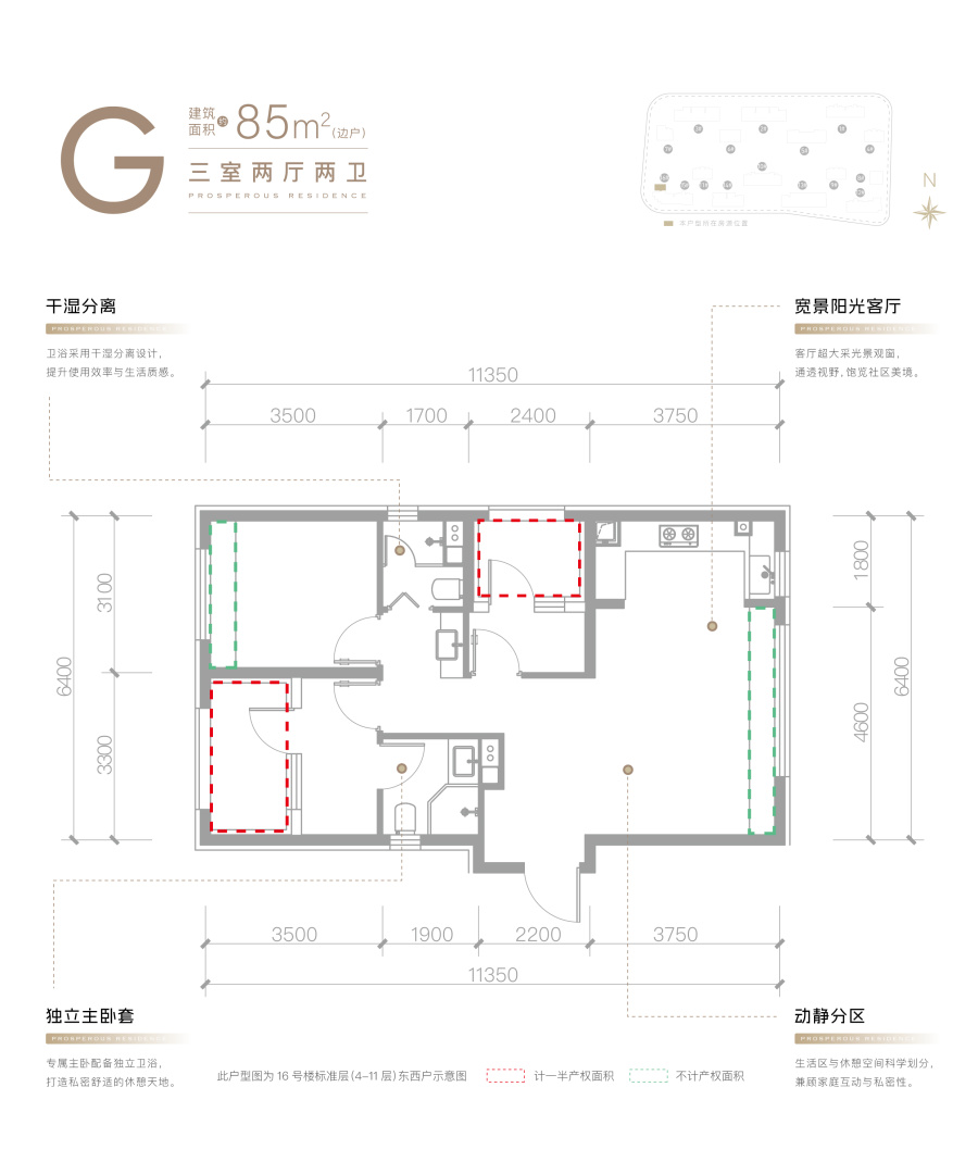 G户型 85㎡-3室2厅2卫-85.0㎡
