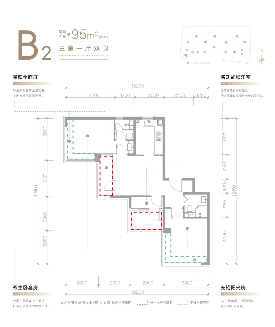B2户型 95㎡-3室1厅2卫-95.0㎡