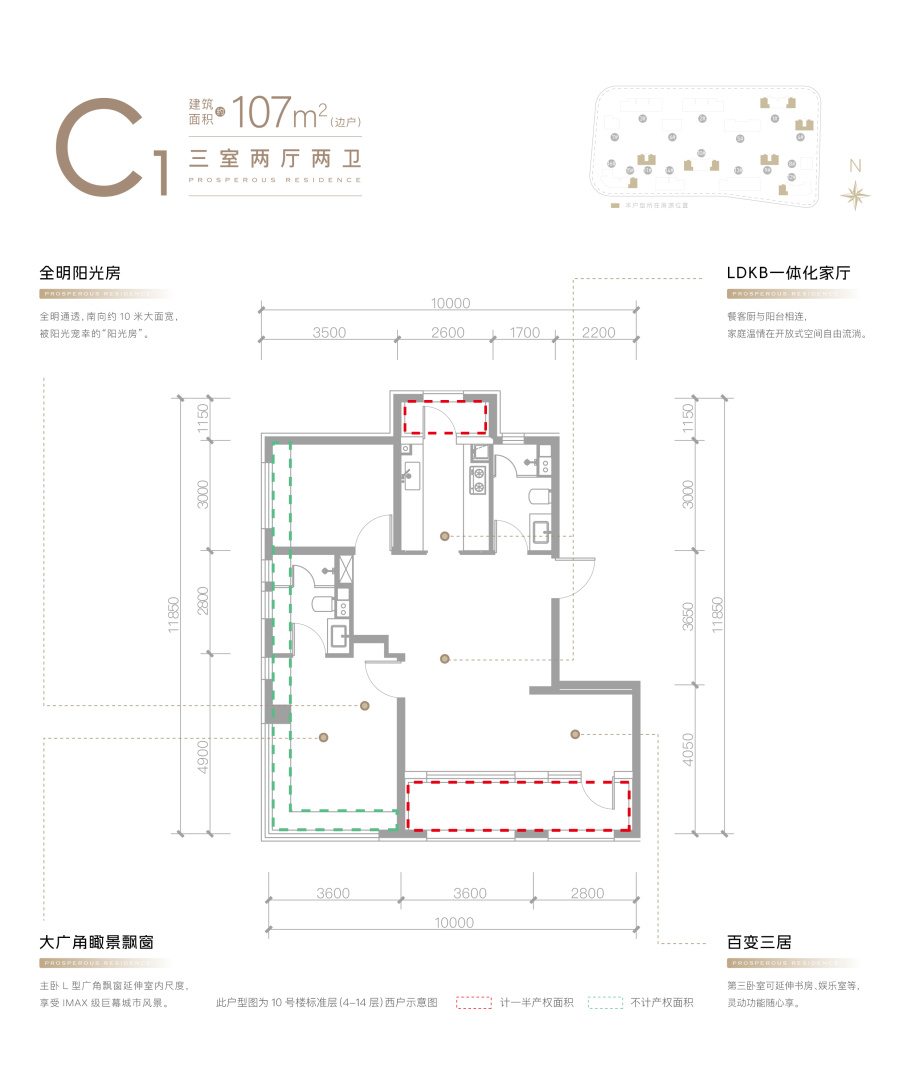 C1户型 107㎡-3室2厅2卫-107.0㎡