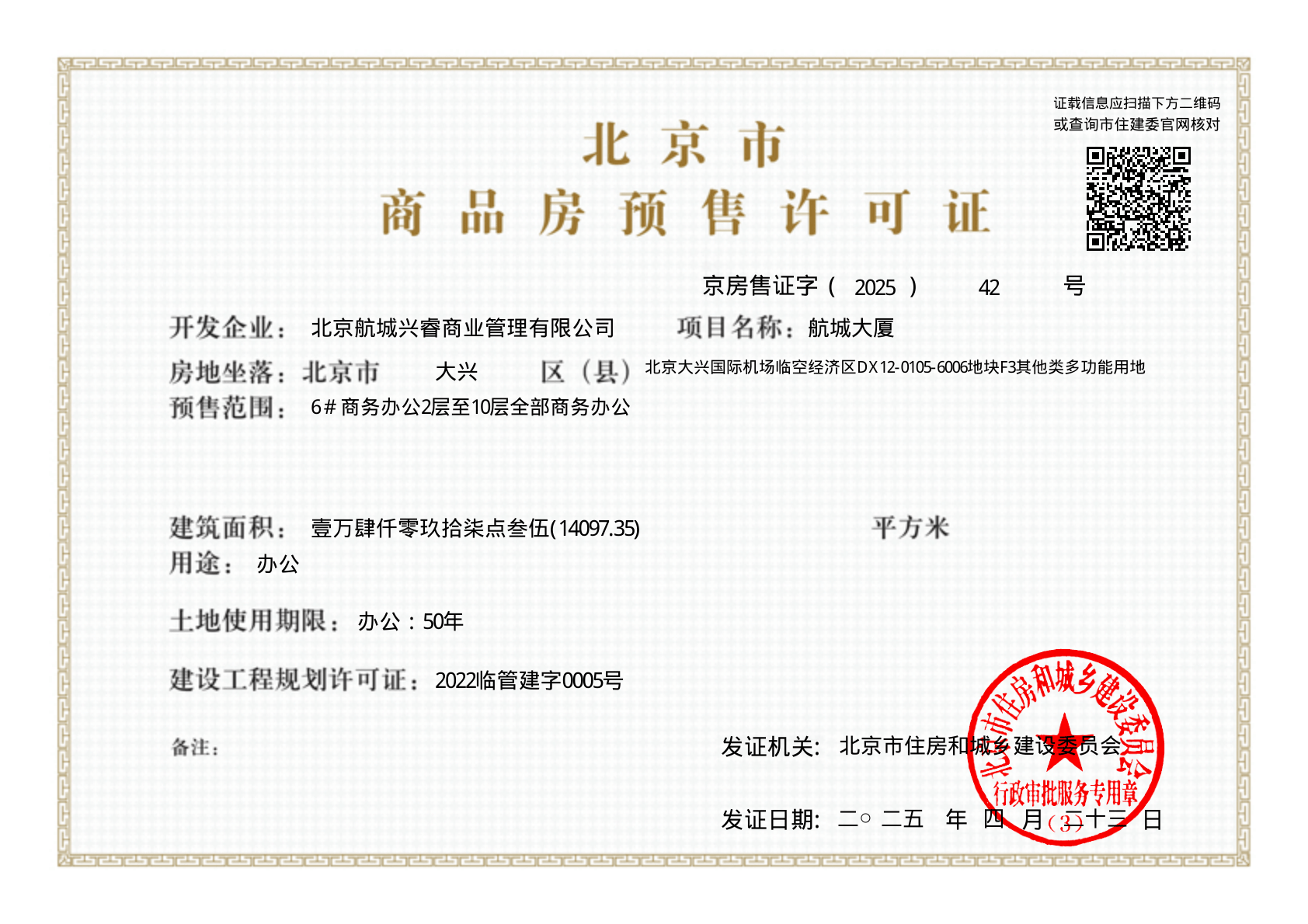 京房售证字(2025)42号