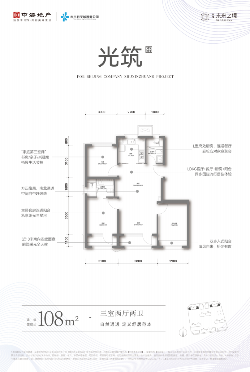 中海未来之境108户型 方正格局南北通透 主卧套房连通阳台 近10米南向连续面宽 L型高效厨房,连通餐厅 LDKG客厅➕餐厅➕厨房➕阳台 双步入式阳台 样板间