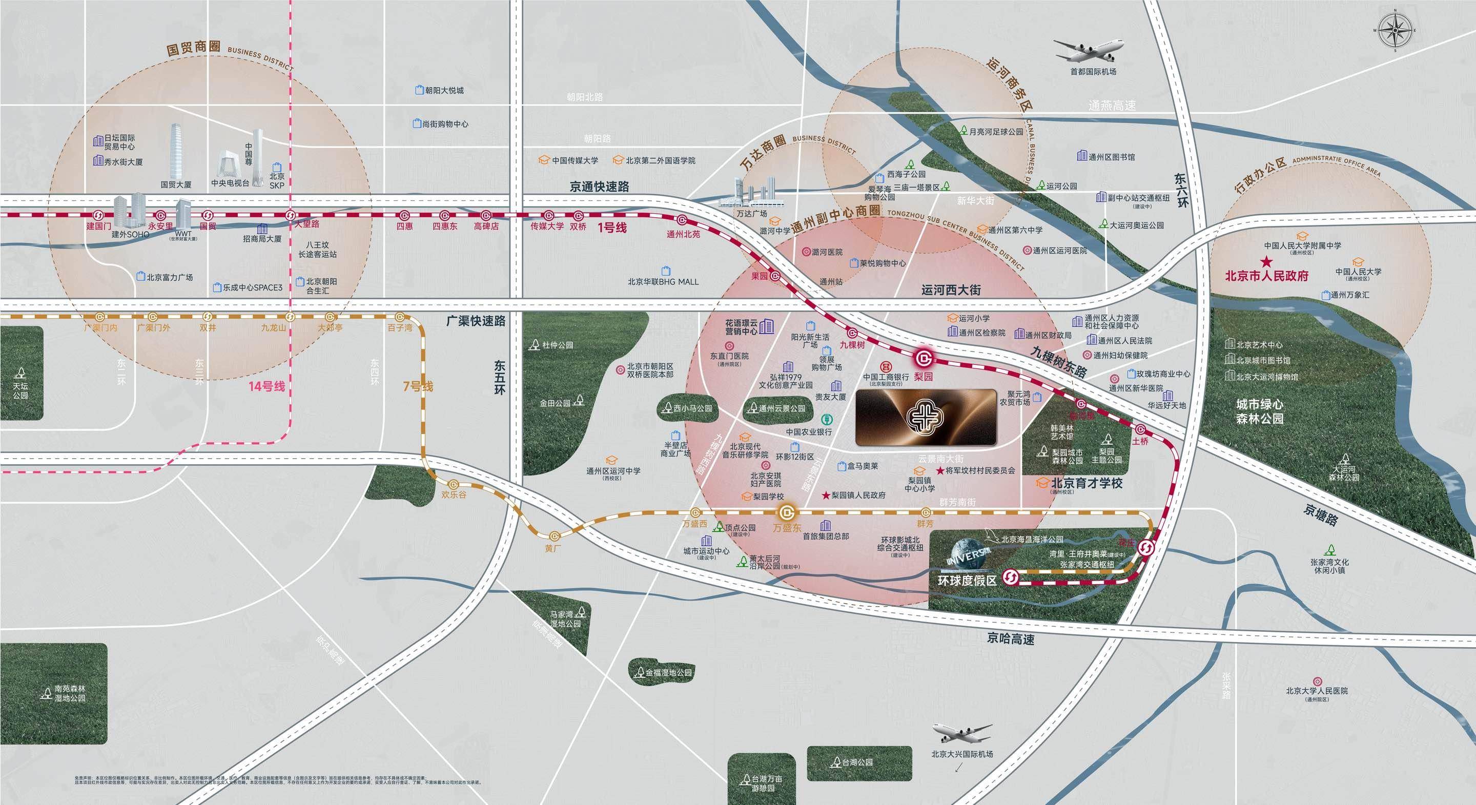 教育:新城嘉园中心幼儿园(重点)、育才学校(重点)、梨园学校、潞河学校、北京二中(通州分校)、运河中学以及中国人民大学通州校区