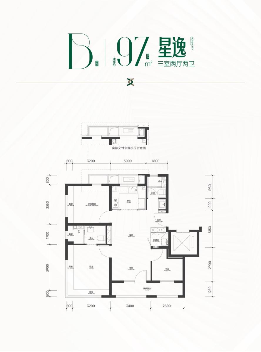 97平样板间实拍,三室两厅两卫格局,南向三面宽,私密性强 样板间