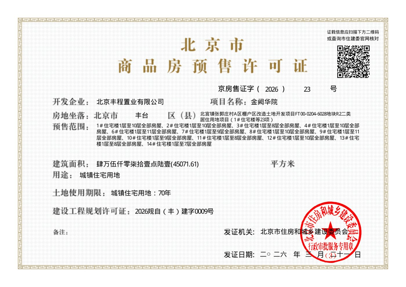 京房售证字(2026)23号