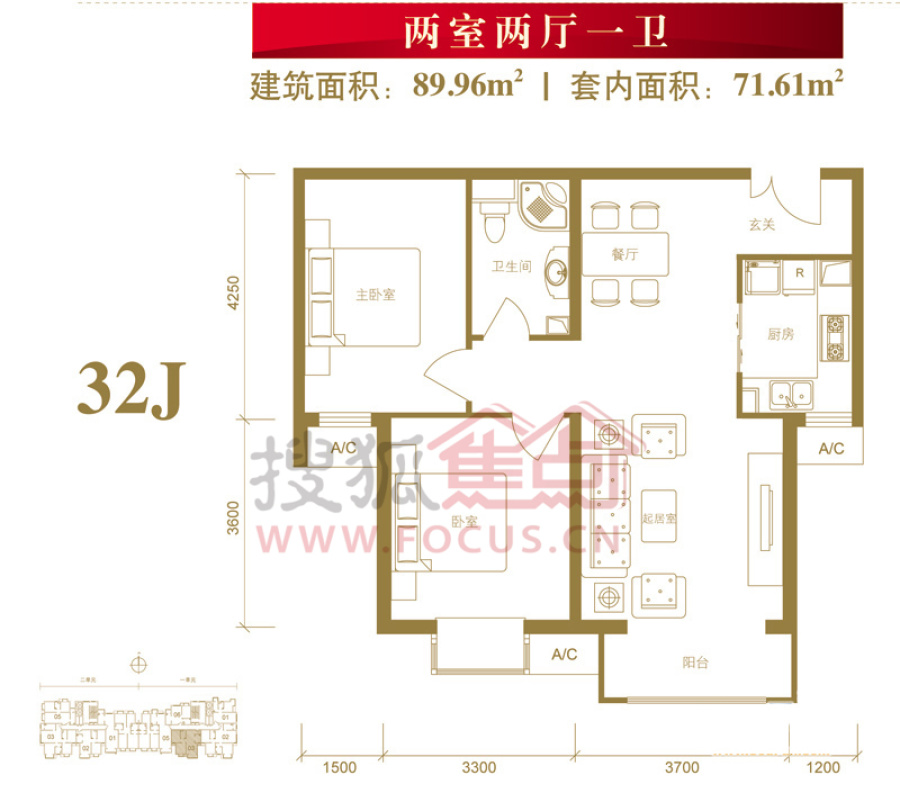 16号楼 32J户型-2室2厅1卫-89.96㎡