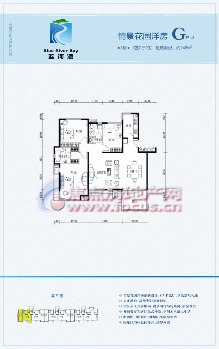蓝河湾情景花园洋房G-3室2厅2卫-148.0㎡