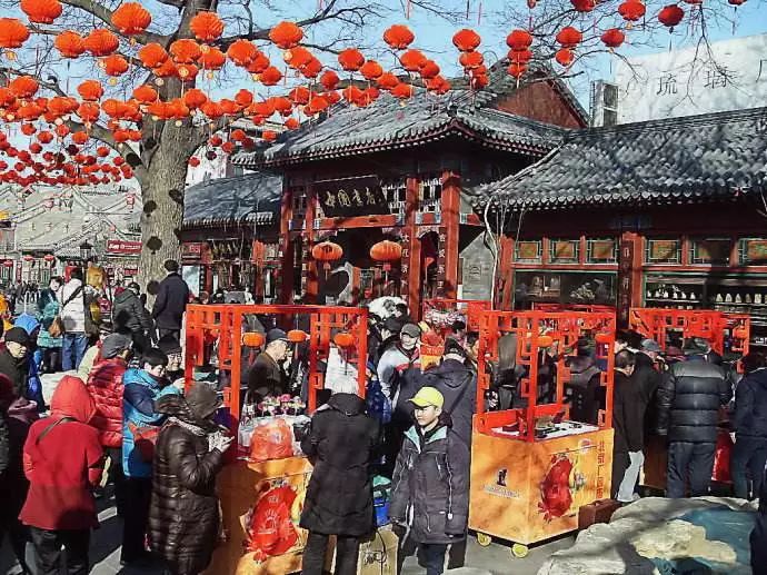 北京春节期间,另一番盛况就是庙会和民间组织的各种花会。旧时的北京城内及郊区,共有七百余座庙宇,春节期间,大小庙宇均向香客、游人开放。在庙内及门前设有集市,称做庙会。“神仙本无踪,只留石猴在观中”,以前,白云观门前排大队摸石猴,“马上封侯”的壮观景象让不少老北京人犹然在目。
