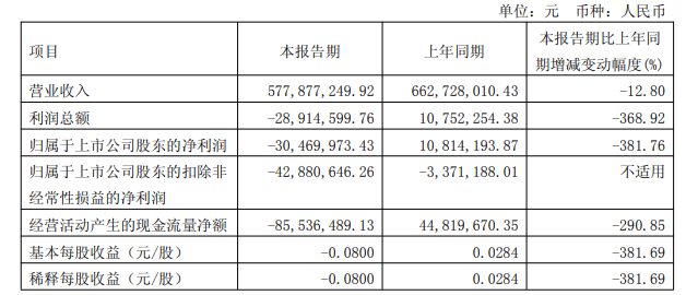 惠达卫浴4月29日发布2026年一季报。公告显示,公司一季度实现营业收入5.78亿元,同比下滑12.80%;归母净利润-3047.00万元,上年同期1081.42万元;扣非归母净利润-4288.06万元。