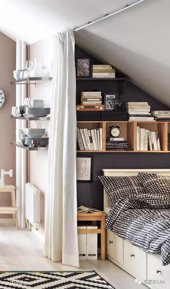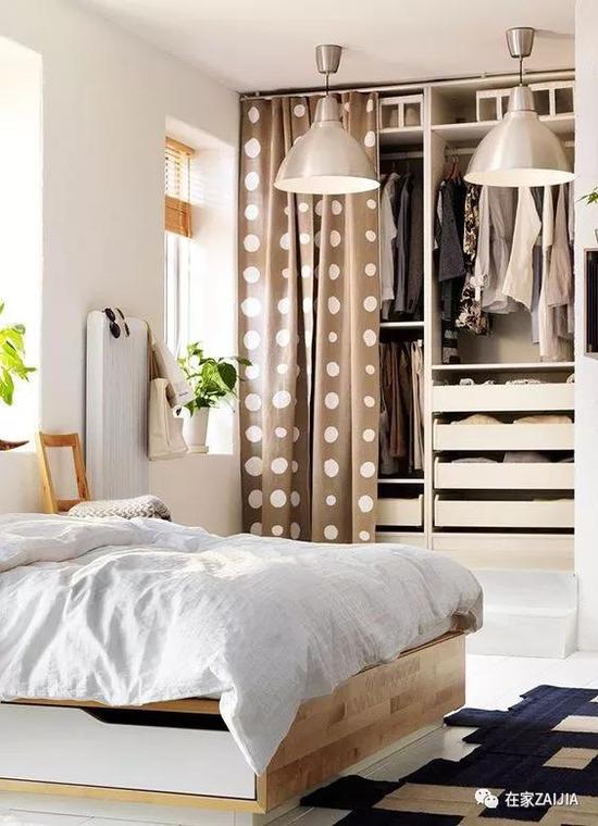 挂帘的较大好处?这种胖点儿都站不下的卧室,它能妥妥的代替柜门!