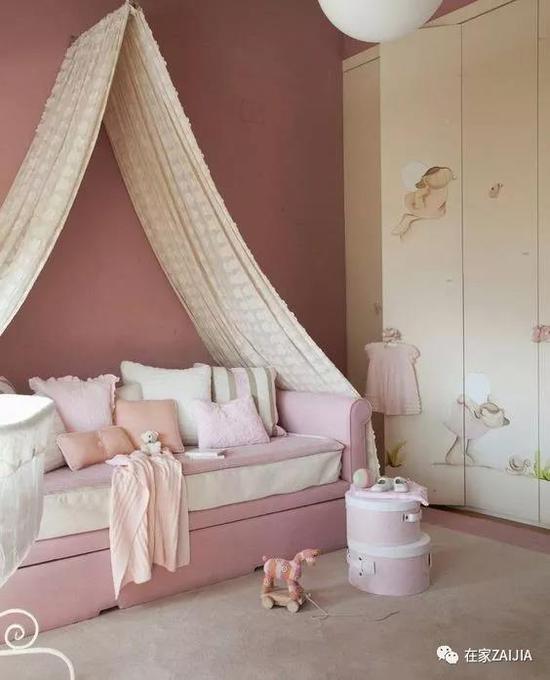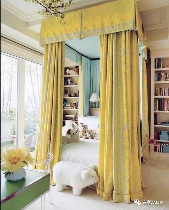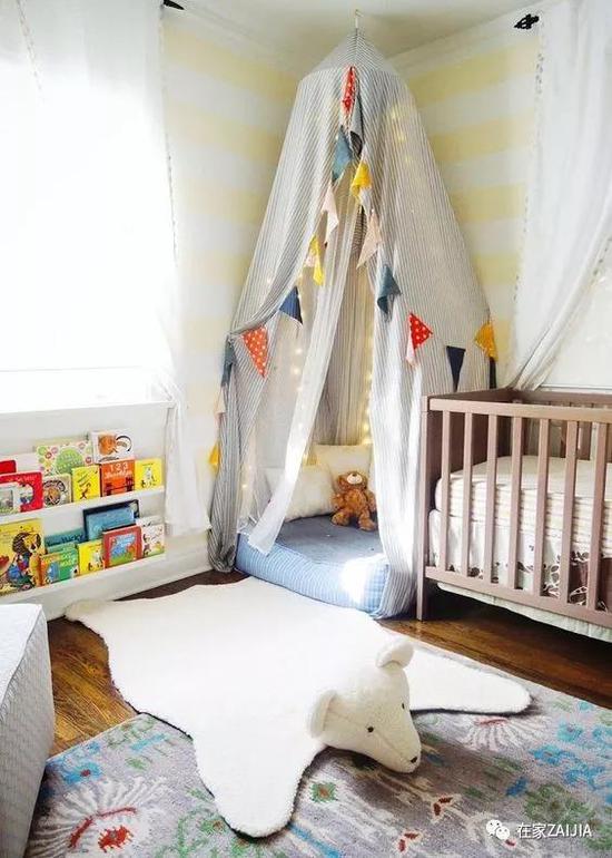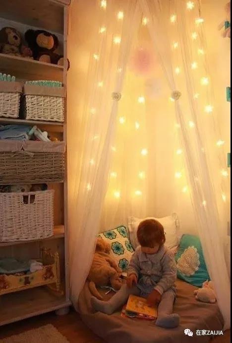 这种床幔也深受小朋友喜爱,妈妈讲完故事拉上帘帮助进入睡眠。