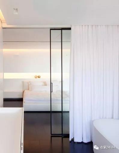 比较常用于歪果仁儿的大开间户型和精品酒店房间。家居君觉得可以给小户型参考:玻璃门可以隔温、隔湿,但不能隔绝视线,在透明浴房里洗澡,羞羞哒的宝宝们可以考虑加个帘配套使用。