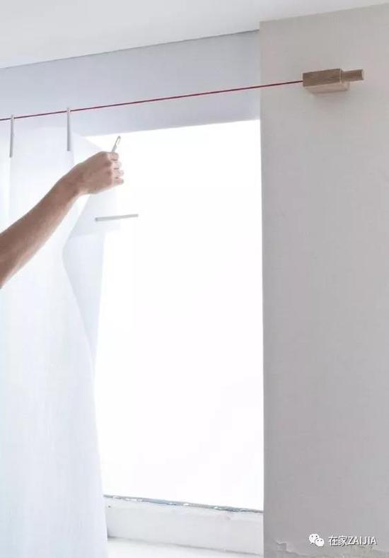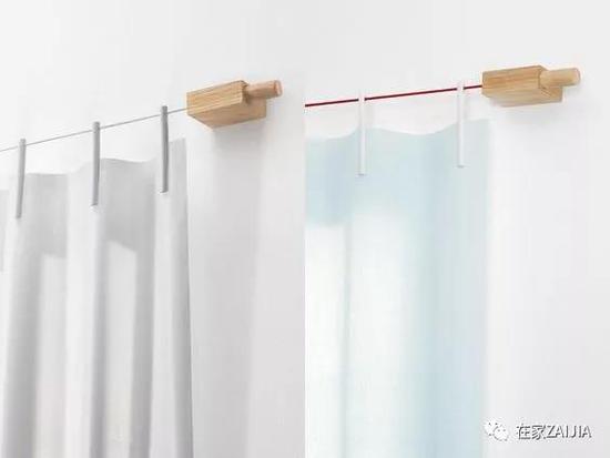 较后一种也是较简单出效果的一种,手残党也能优质破解。你只需要悬挂或固定一到两根木棍到天花板或墙上,再把你喜欢的长布帘搭在上面就好。