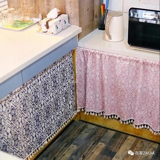 租房的宝宝还能用半帘来改造一些老旧的矮桌、镜柜,外观挽救了颜值,还能一帘遮百丑,里面收纳厨具、调料、杂物。