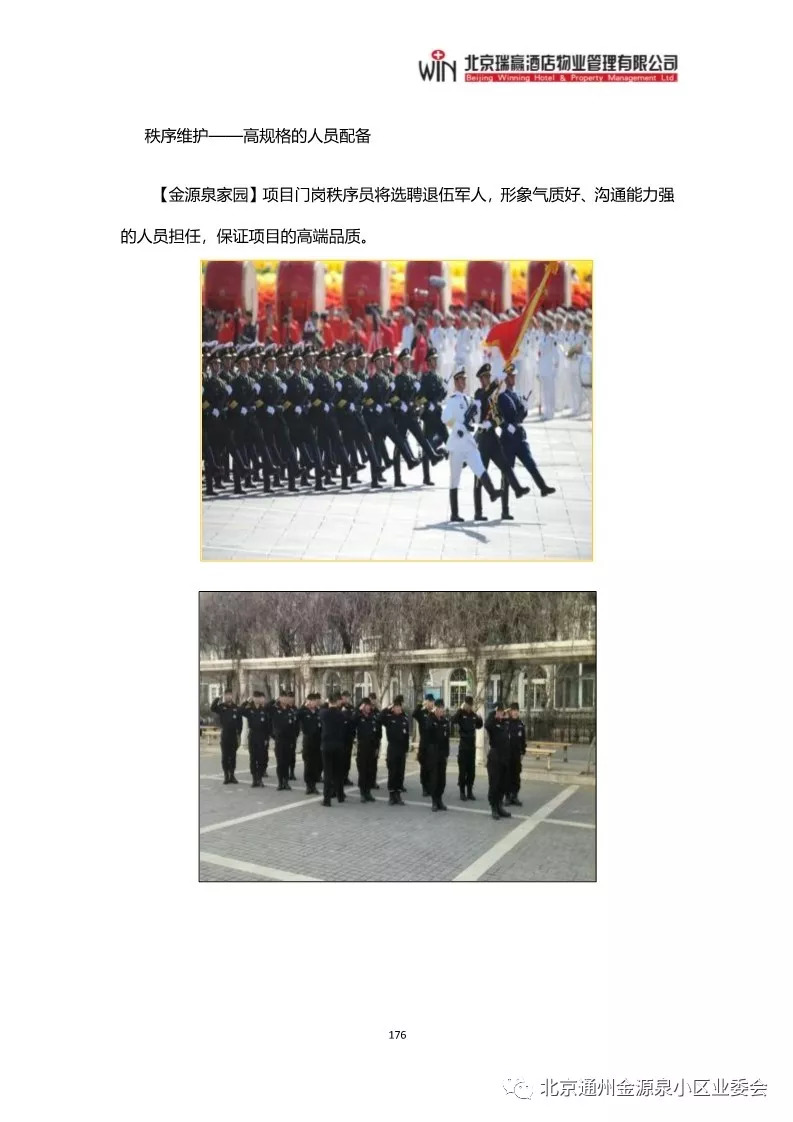 中标候选人前三名的物业公司在标书中都大量描述了“常规物业管理”的内容,涉及各个方面,包括安保、消防、电梯、绿化、保洁、管理机制、费用明细公示制度、人员安排、培训等等,有几百页描述。