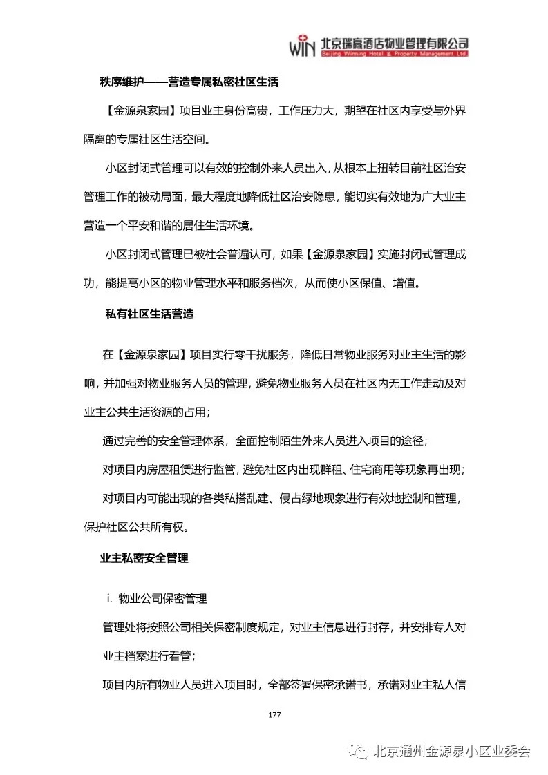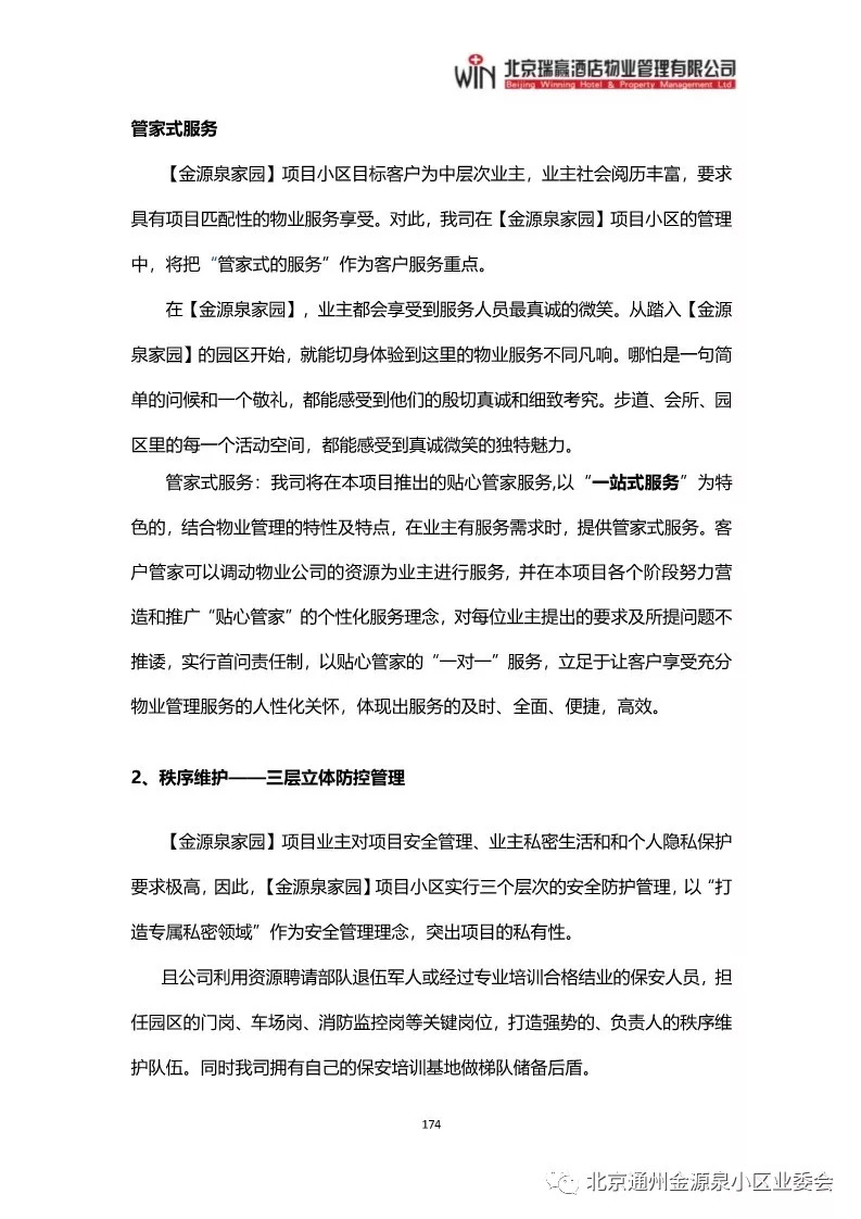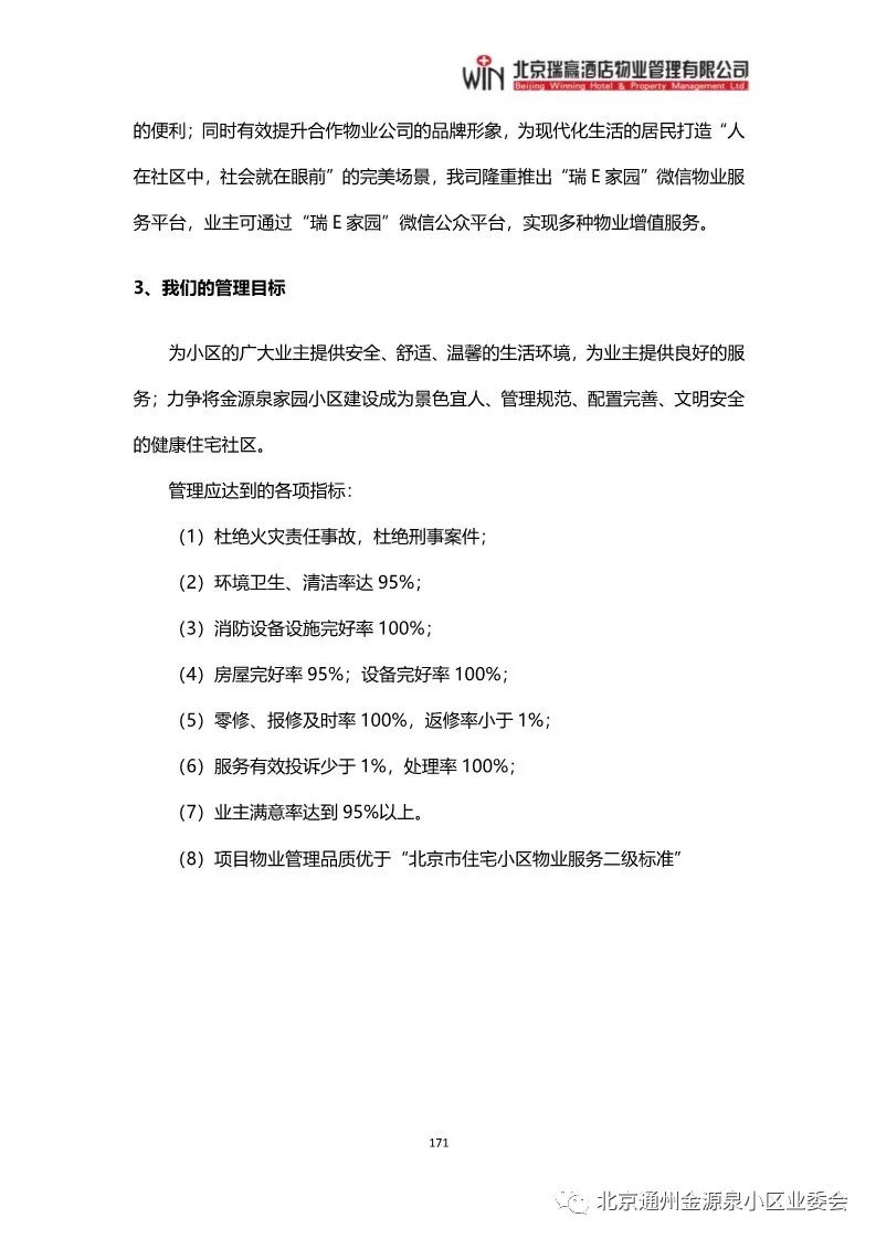 以下为中标候选人排名前列名的北京瑞赢酒店物业管理有限公司投标文件中对小区管理设想的资料节选: