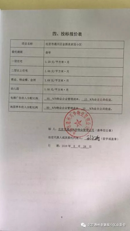 如下图为北京市通州区兴华物业管理公司的相关报价和分配比例,其盈亏测算后的报价结果是:将电梯广告和地面停车收入收益的90%用于物业企业管理成本。根据评标方法和标准,不具有竞争力。