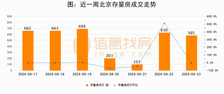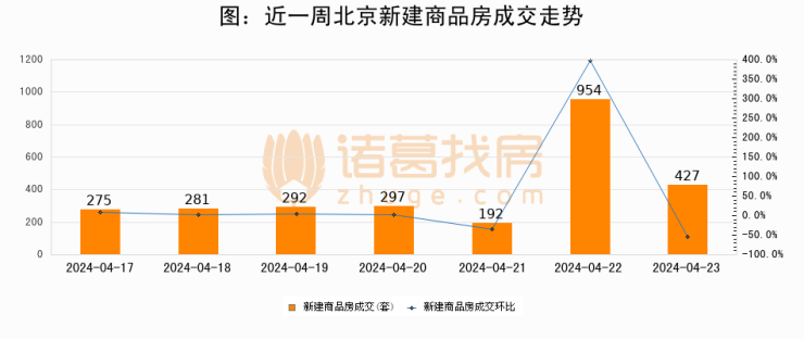 【北京成交日报】04月23日新房成交427套、二手房585套;涨价房源52套