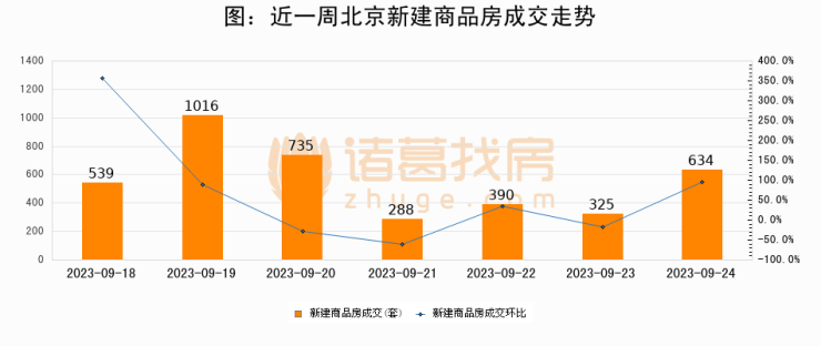 【北京成交日报】09月24日新房成交634套、二手房148套;涨价房源220套