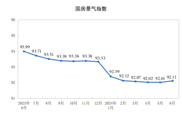 6月份,房地产开发景气指数(简称“国房景气指数”)为92.11。