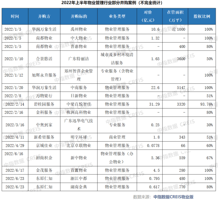 《每日经济新闻》记者梳理还发现,上半年物业收并购不仅标的规模发生变化,业务类型方面也有所变化。