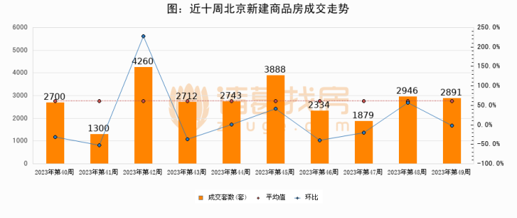 进入2023年第49周(11月27日-12月03日),北京新建商品房成交2891套,较上周减少55套,环比下降1.9%