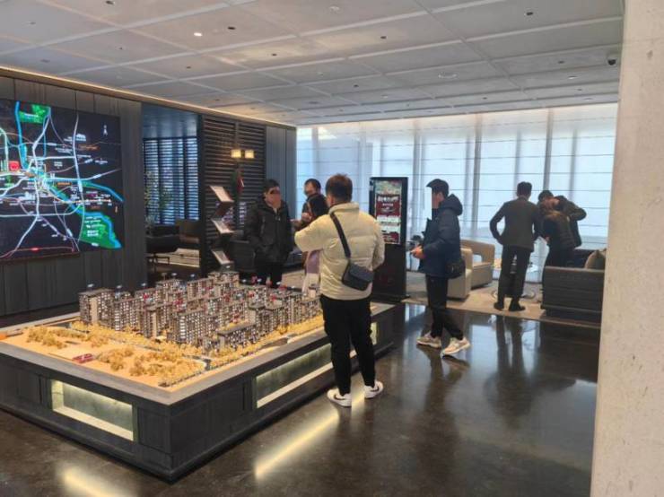 新京报记者在万科东庐项目营销中心看到,前来看房的人络绎不绝,直至中午用餐时间,依旧有十几组顾客在看样板间和沙盘。