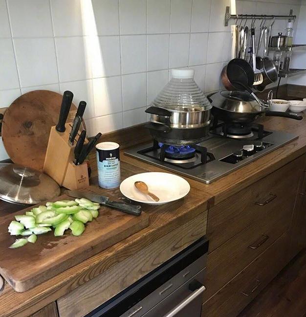 厨房的装修很古朴,搭配现代的高科技设计高端实用。