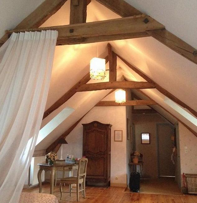 袁立的卧室空间超大而且装修围绕着原木色设计,太自然化了。白色的屋顶装饰更显得清爽自然,人字形的屋顶起到了高挑的作用,而且把整个空间的自然感都营造出来了。卧室还安装了一面特别有安全感的纱帘,满满的都是生活气息,很慵懒唯美。
