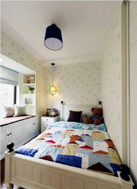 小户型卧室的宽度一般都比较窄,所以床可以选择靠着墙来摆放,再加上一个床头柜、嵌入式的衣柜,就差不多没有空间了。
