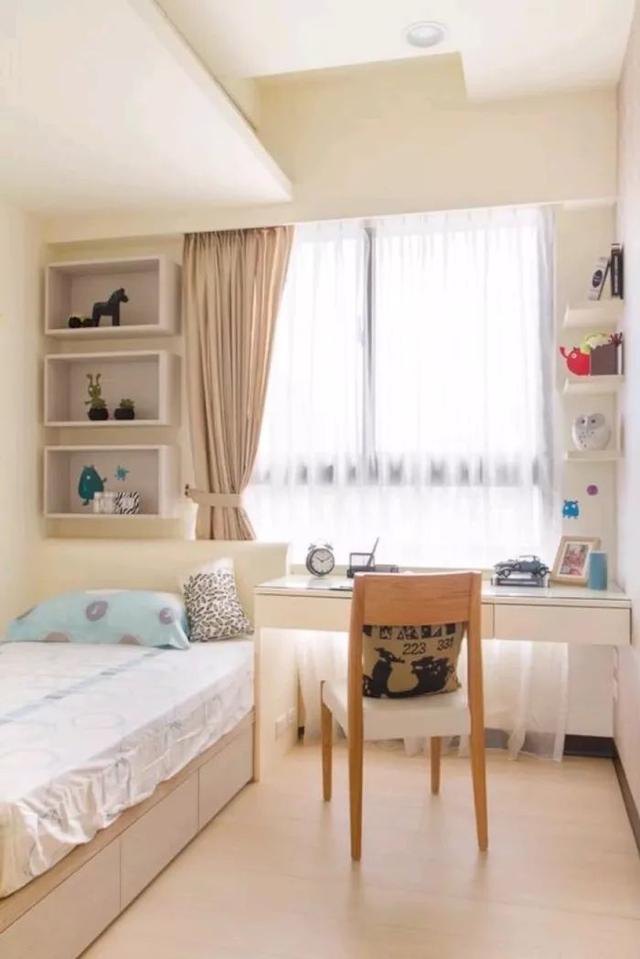 等到之后也可以作为孩子的儿童房,沙发床上方的柜子可以摆放很多的玩具,长宽也足够孩子睡觉。
