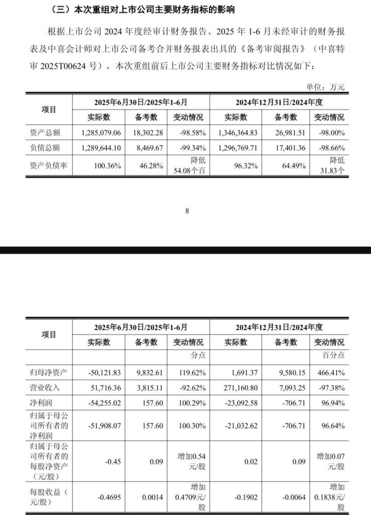 津投城开方面称,本次交易完成后,相关标的资产将不再纳入上市公司合并报表范围,上市公司将“由重转轻”,预计上市公司总资产、总负债等指标将出现较大幅度下降,但净资产、净利润等指标将大幅提高,资产负债率有所降低,资产质量、资本结构和盈利情况将得到有效改善,有利于保护上市公司全体股东利益。