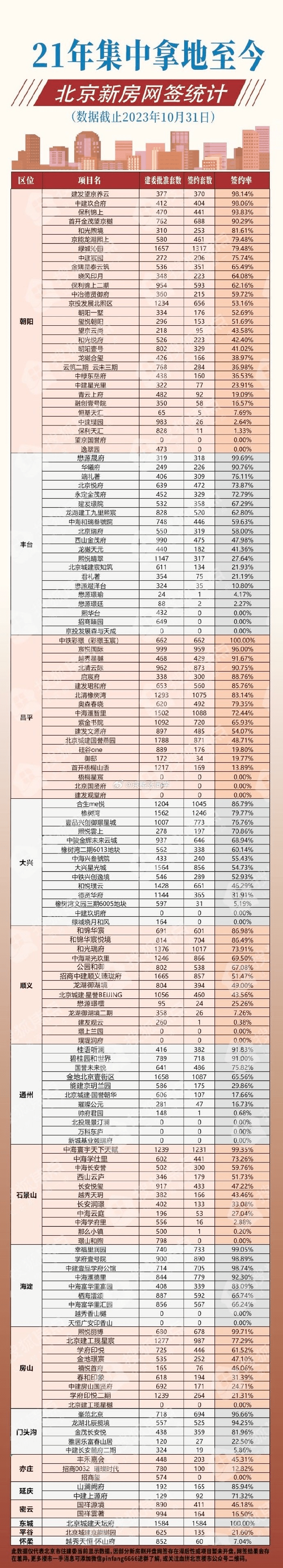 北京在售新盘,10月最新网签数据,放下面大家自己看。