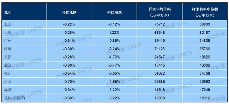 10月北京二手房价环比下跌0.22%,同比下跌0.12%;