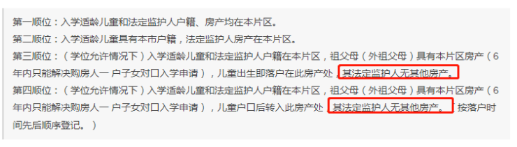 石景山区实验小学招生简章中及顺位中提及到使用四老房产需要提供无房证明,(银河小学顺位要求)具体如下: