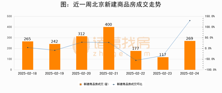 【北京成交日报】02月24日新房成交269套、二手房789套;涨价房源105套