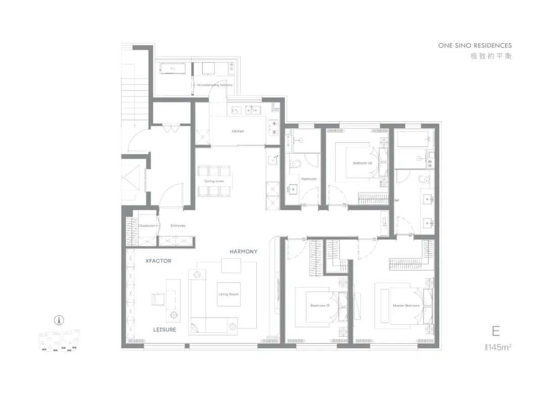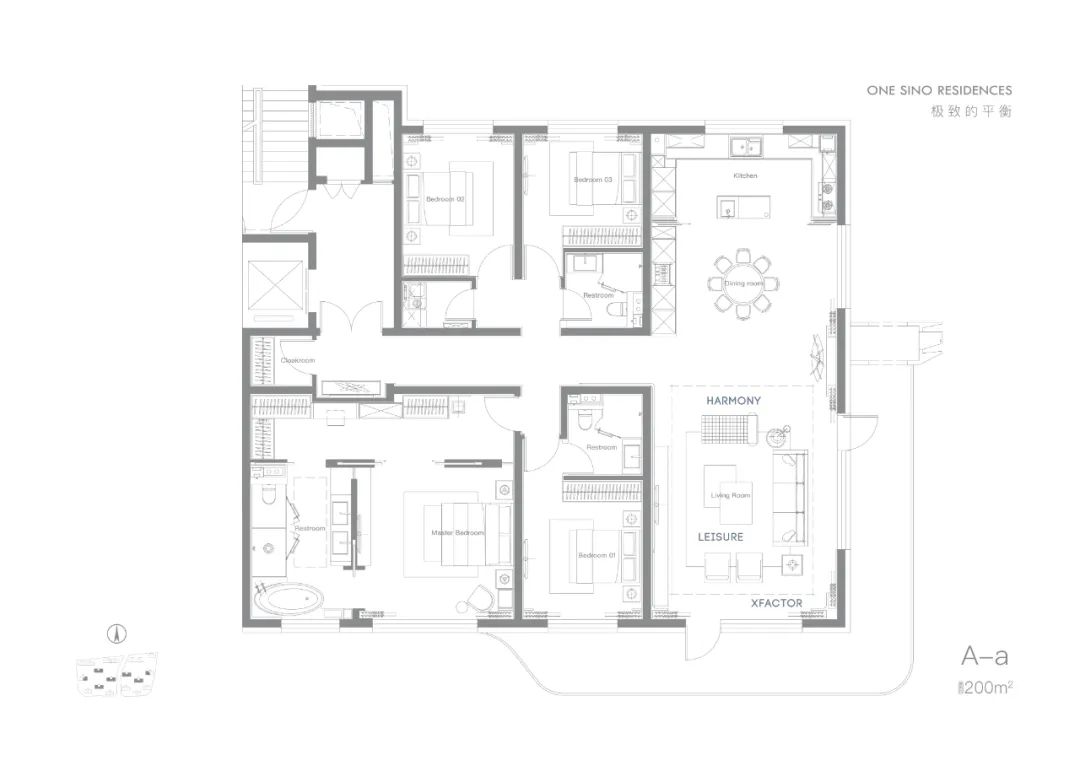 带270°转角阳台的200㎡户型,分布在东区的小区核心位置3、4、5栋中,可以俯瞰园林。