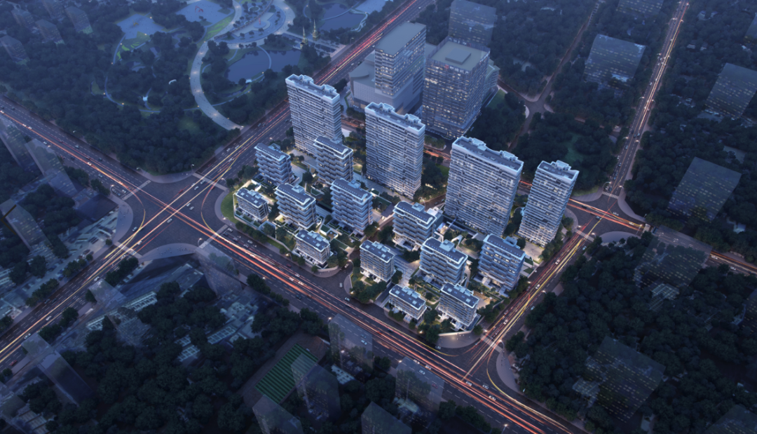 中海甲叁號院的配建,包括8万平银泰精品店、5万平国际甲级写字楼、养老设施等,全部位于地块北侧,与南侧纯住宅地块有市政道路相隔。