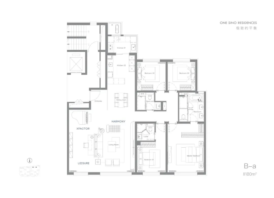 北侧2栋是26层的高板,主要是150㎡及180㎡,以大面宽通透的逻辑为基础,优化室内空间,两种户型客厅面宽均超7米,户型通透均好。