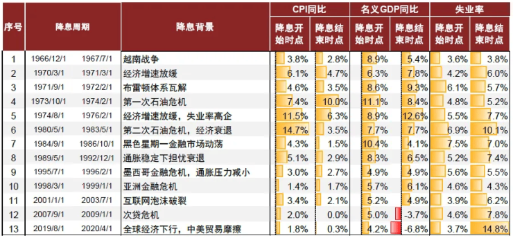 (一)1970年代(滞胀及能源危机,期间多次降息,1970.3-1971.3降息527bp,1971.9-1972.2降息227bp,1973.10-1974.2降息181bp,1974.8-1976.2降息815bp)