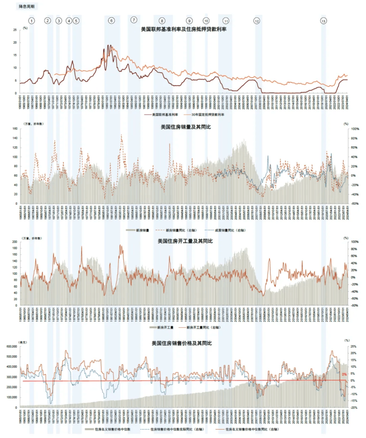 近期美国降息预期升温,我们在本文中对历轮降息周期中美国住宅市场表现进行复盘。