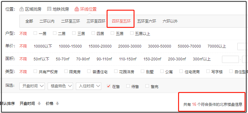 且帝都五环内的房子越来越少,可选余地被持续压缩……据焦点北京房产网站统计,目前四环和五环之间,在售楼盘只有16个……其中多数为限竞期房(至少8年内不能出手),商品房少之又少。