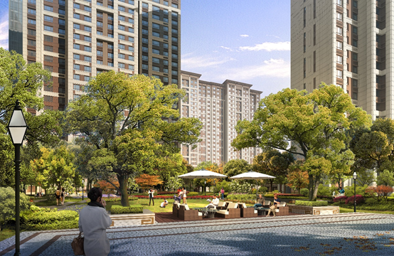中海寰宇天下建筑采用新中式设计风格,在大门、建筑顶部及窗口等处甄选大量中式建筑符号展现颇具底蕴的现代东方建筑人文意境,既沉稳庄重,又不失意趣灵动。园林借鉴恭王府布局规制,精心营造三进归家礼序,呈现“意境、画境、生境”三大艺术境界,构建“春日繁花、夏日荫、秋有彩叶、冬瑞雪”的大美园林景致。