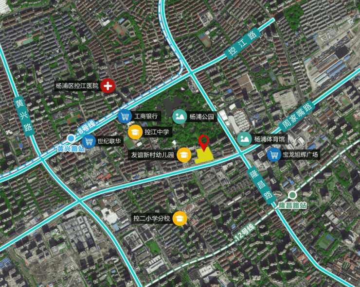 据上海土地市场消息,该地块距轨道交通8号线黄兴路站0.8公里、12号线隆昌路站0.8公里,周边有33路、137路、28路、868路、577路等公交线路;教育配套包括友谊新村幼儿园、控二小学分校、控江中学等;生活配套包括杨浦区控江医院、工商银行(控江支行)、盒马鲜生(杨浦环创店)、世纪联华(控江店)等。