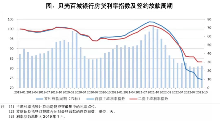 贝壳研究院统计数据显示,2022年10月首套、二套房贷主流利率指数环比继续下行。10月首套房贷主流利率平均为4.12%,二套平均为4.91%,首套环比下行3BP,二套与上月持平,较去年较高点分别回落162BP和109BP。