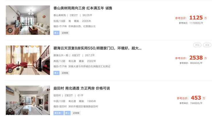 在此之前,深圳各中介平台对于业主报价高于政府参考价的,仅显示官方参考价;部分低于参考价挂牌的房源则直接显示业主真实报价。