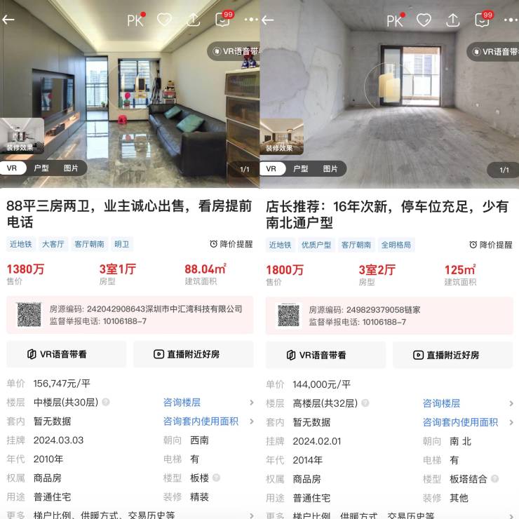 其实,去年11月,市场就传出“深圳二手房下架参考价”的消息。彼时,消息称,“今日(2023年11月2日)21:00开始外网和门店可展示实际放盘价,但不能高于13.2万元/平方米,高于该价格的房源依然以参考价对外展示。”不过,这一消息在当晚并未应验。有媒体报道称“这一计划被相关部门要求暂停”。当日晚间,澎湃新闻登录深圳各大主流房产中介平台,期间,有中介平台闪现过房源真实挂牌价,不过数分钟后又恢复至参考价。