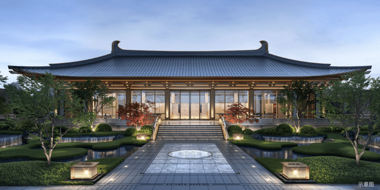 依托一期唐风建筑、园林的成功实践经验,北京国贤府贰期沿袭大明宫的建筑规制,以“丹凤门-含元殿-太液池”的中轴规划营造盛世礼制之美:府门取样大明宫丹凤门,展现“九五之尊”的盛世威仪;归家大堂以含元殿为灵感,让唐制建筑焕发当代美感;建筑立面沿袭传统九脊殿的屋脊形式,彰显屋面礼制秩序;大明宫皇家园林太液池的精髓“一池三山”,也在贰期生动复刻。